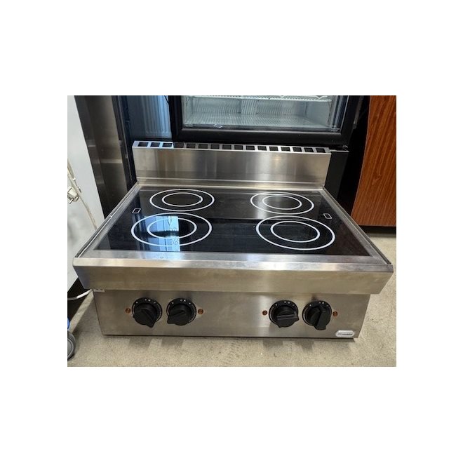 Elspis glaskeramikhäll 4 zoner fun Modular 700. OBS! Använd ca 1 vecka/demo. 3 månaders reservdelsgaranti. Rostfritt utförande. Förseglad glaskeramikhäll, 4 oberoende kokzoner, alla med strålningsvärmeelement